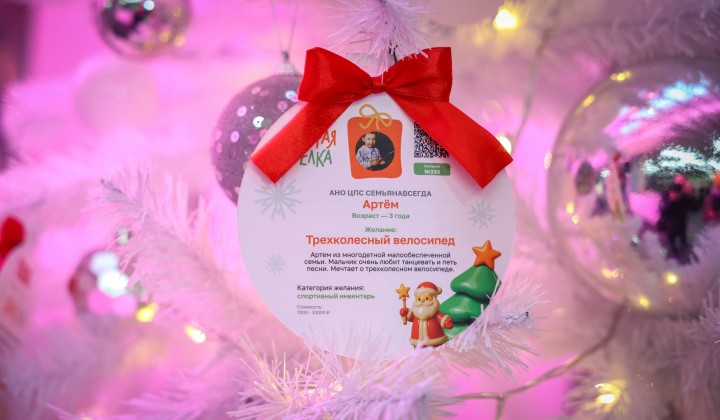 В рамках акции «Добрая елка» каждый желающий может исполнить мечту ребенка, который оказался в непростой жизненной ситуации. Снять новогодний шар с пожеланием можно как с физической елки, так и онлайн на сайте акции.