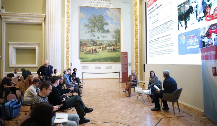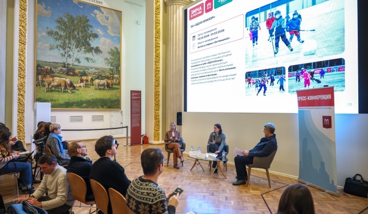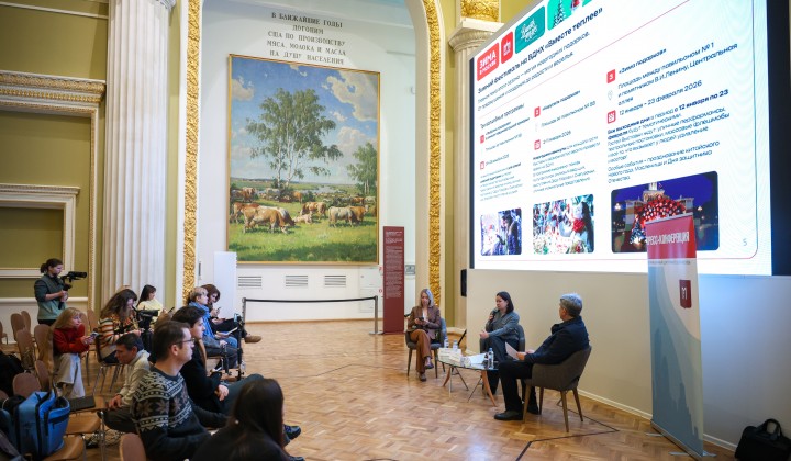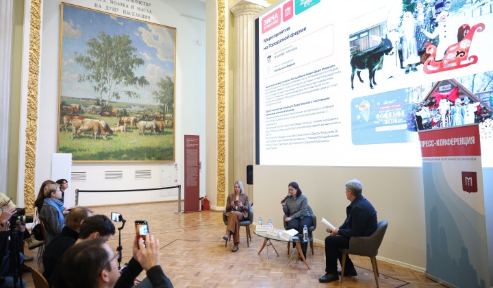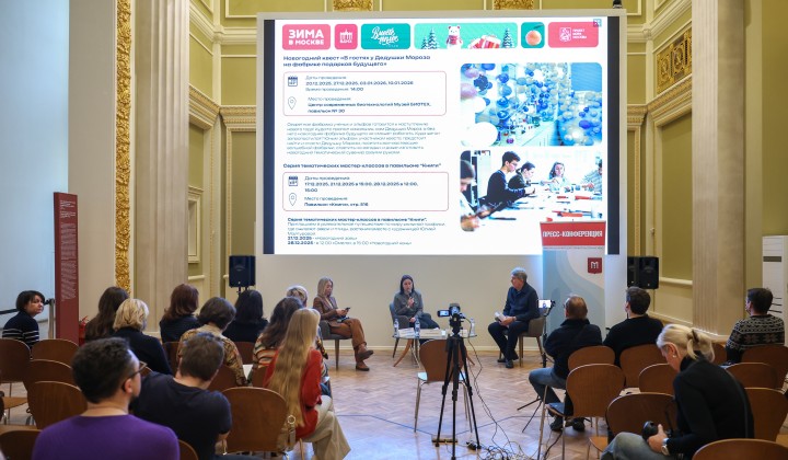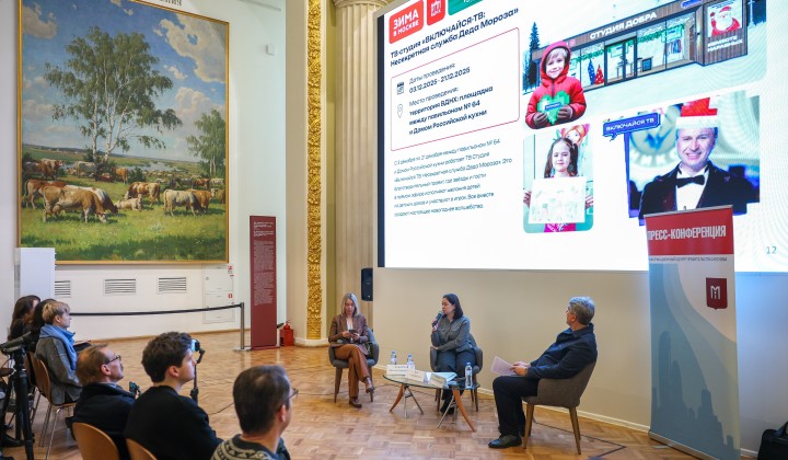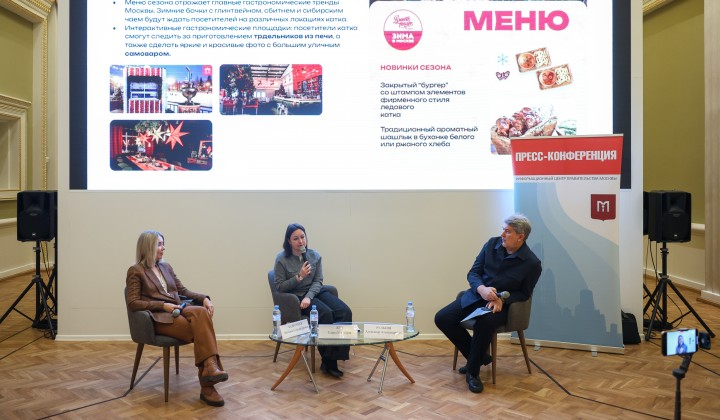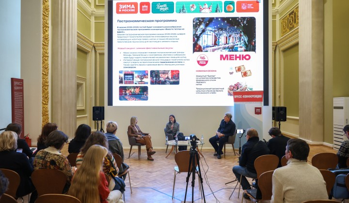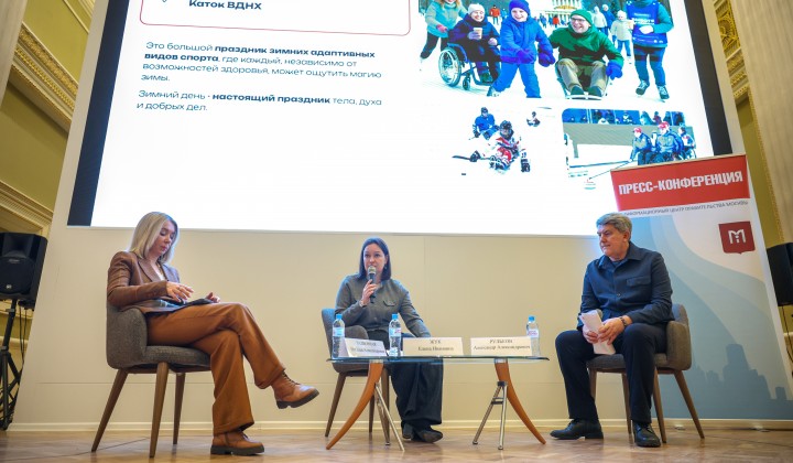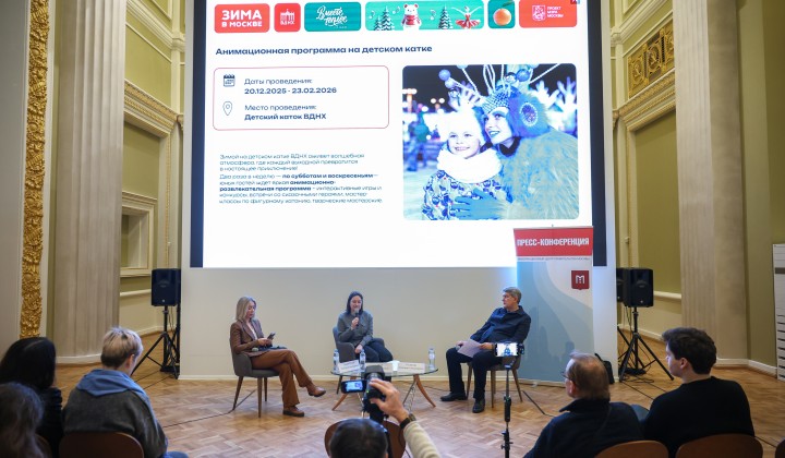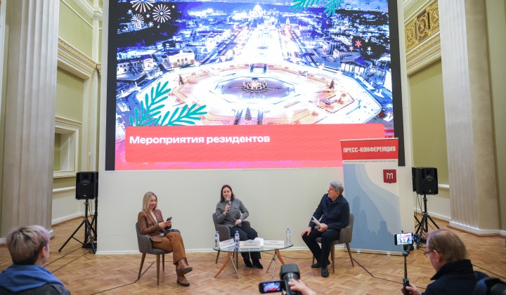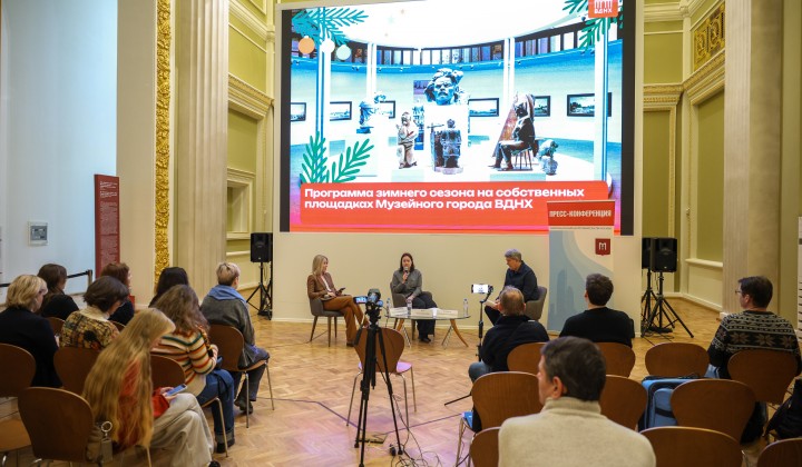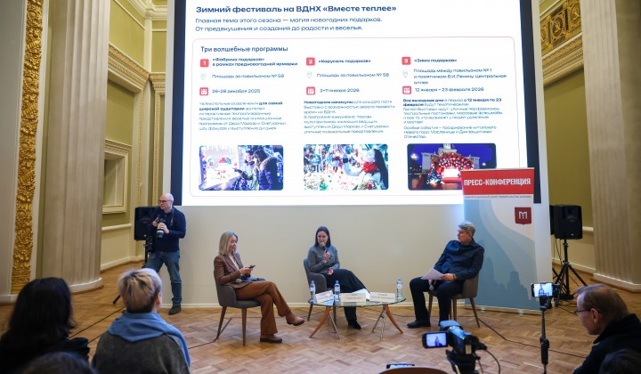 Фото с пресс-конференции ВДНХ о программе зимнего сезона «Вместе теплее» и новогодних каникул