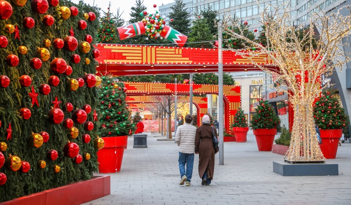 В 2025 году столица вновь преобразилась к Новому году и Рождеству. Так, на Новом Арбате появилась рождественская галерея. Тоннель из красных арок оформили мерцающими лампочками, красно-золотыми рейками и декором из свежей хвои и елочных шаров.
