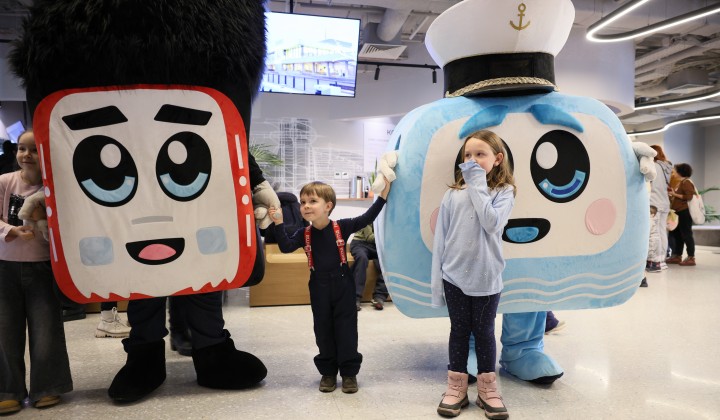 В честь Всемирного дня ребенка, который отмечается 20 ноября, на Южном речном вокзале прошло праздничное мероприятие. Маленьких москвичей и гостей столицы развлекали любимые персонажи проекта «Московский транспорт. Детям»: Метроша, Электробусик и Речкин.