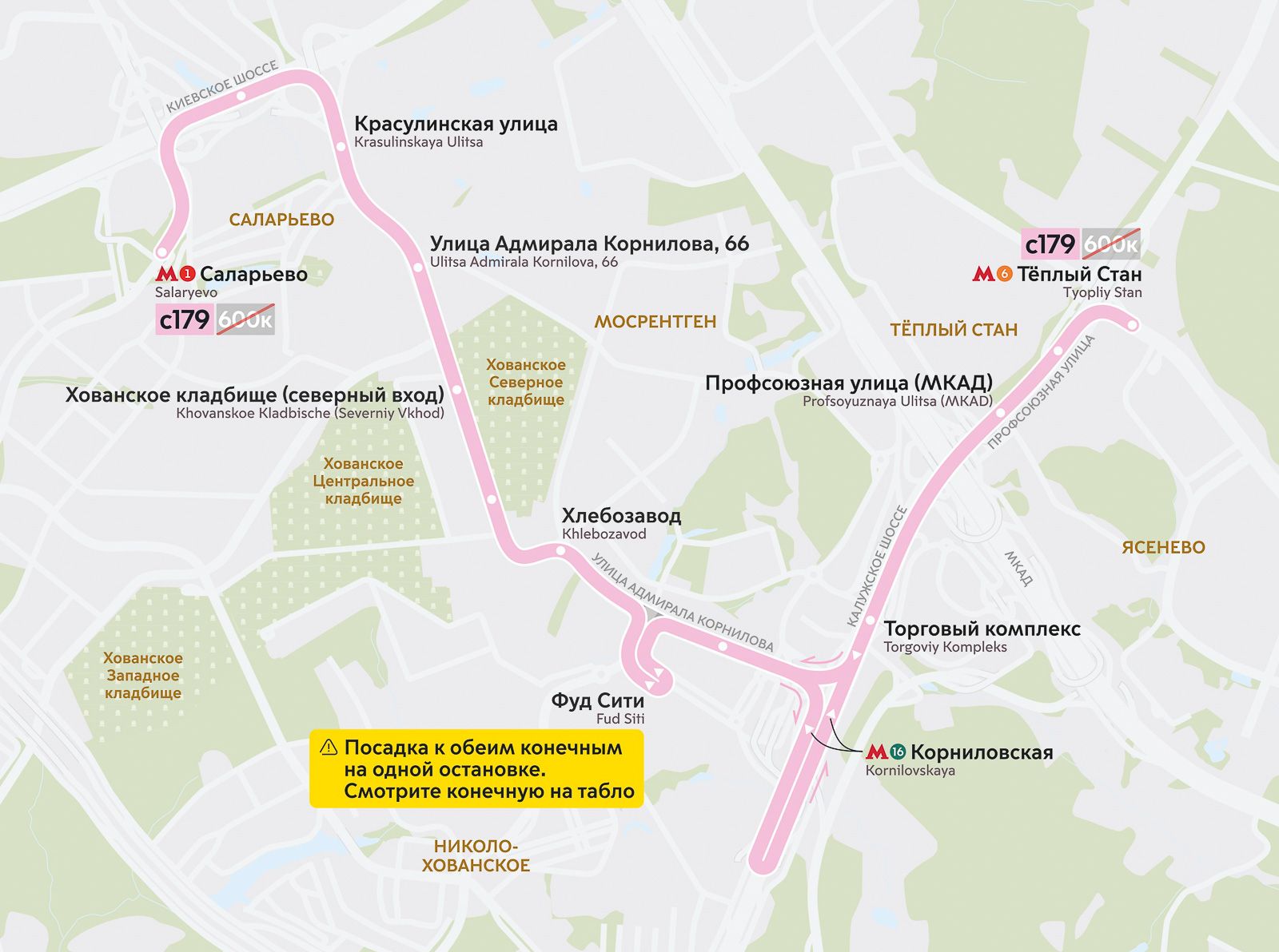 Маршруты С179 и № 600к объединят. Автобусы С179 пойдут со всеми остановками. Транспорт будет ходить чаще, время в пути сократится. Остановку у станции метро «Мневники» перенесут ближе к выходам из метро.