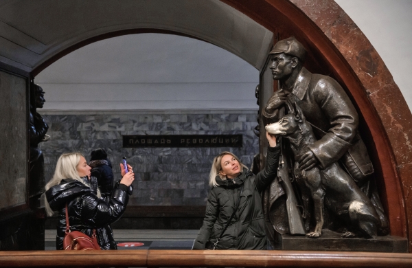 Памятник «Пограничник с собакой» на станции метро «Площадь Революции» создал Матвей Манизер. Скульптура известна многим москвичам, особенно столичным студентам, многие из которых верят, что если на ходу потереть собаке нос, то все экзамены будут сданы на «отлично». Первыми же эту традицию завели студенты МГТУ имени Баумана.